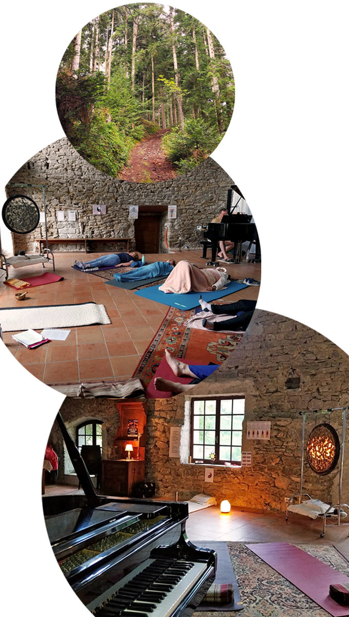 Ce séjour est une proposition pour amener ce changement en vous avec l’outil du Yoga Kundalini, la vibration du piano à queue, la guérison par le bain sonore du Gong et la présence forte de la nature :